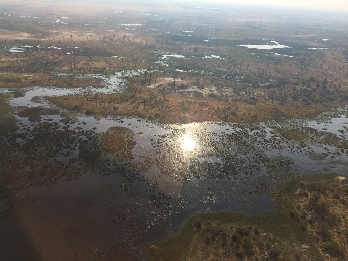 מספר עצירות בדרך – שכללו ירידה בת 10 ק"מ לדרך עפר מהודקת שסטתה דרומה למה שסומן לי במפה כאגם ונתגלה כמשטח מלח יבש. לאורך הנסיעה הרצופה, מתחתי את הרגל הפגועה הצידה מדי פעם ולא ממש חשתי בעיה. בעצירות אילתרתי קומבינציית השענות על האופנוע וירידה מהצד הימיני הלא נוח בדרך כלל. כך למדתי להסתדר עם המצב. אחר הצהריים הגעתי לעיירת המחוז גהנזי GHANZI ישוב בן כ 13 אלף תושבים שלא ממש הצלחתי להבין ממה תושביה מתפרנסים. מקום חם ומאובק ועם זאת מסודר, מתוחזק ובשעת אחה"צ בה הגעתי תלמידים לבושים חליפות ועניבות מילאו את צידי הדרכים. רכבתי למה שנראה לי כמרכז ומצאתי את הלודג' קלהארי ארמס הנחשב